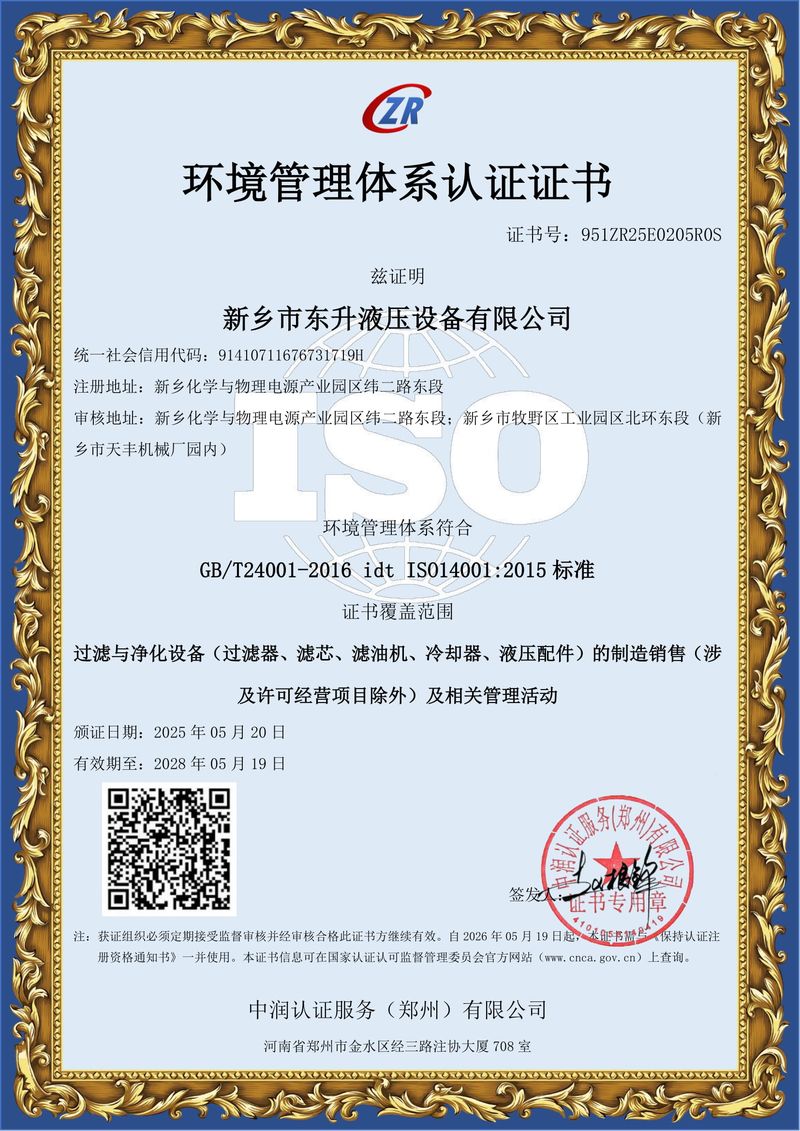 環(huán)境管理體系認證證書